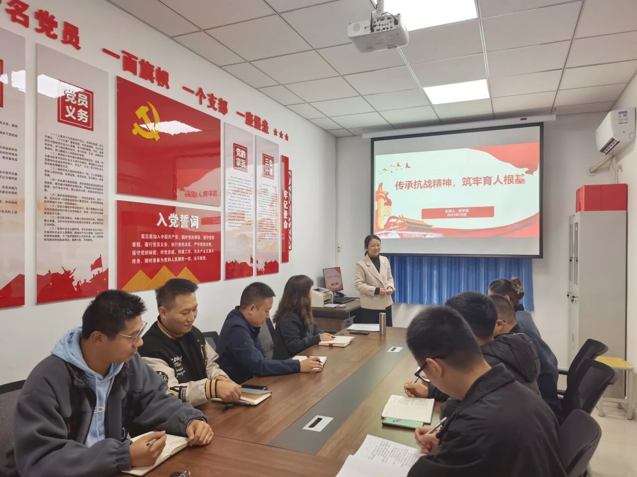 10月15日中午,学工处、团委在“一站式”学生社区党员活动室联合举办了题为“传承抗战精神,筑牢育人根基”的专题学习讲座。活动邀请马克思主义学院张宇晴副教授担任主讲,学工处、团委全体党员干部参加了学习。
