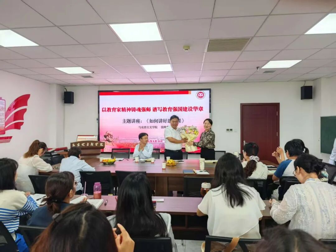 在第41个教师节来临之际,为弘扬尊师重教风尚,提升思政课育人实效,汉中职业技术学院马克思主义学院于2025年9月10日在行政楼X-514会议室举办了以“以教育家精神铸魂强师 谱写教育强国建设华章”为主题的教师节活动。活动由主题讲座与交流座谈会两大环节组成。在主题讲座阶段,特邀汉中职业技术学院原教育教学督导室主任、马克思主义学院退休教师张陕豫副教授作题为《如何讲好思政课》的专题主旨讲座。马克思主义学院将以此次活动为契机,持续深化思政课教学改革创新,加强师资队伍建设,进一步提升思政课的吸引力与感染力,切实肩负起“为党育人、为国育才”的光荣使命,努力开创学院事业发展新局面。