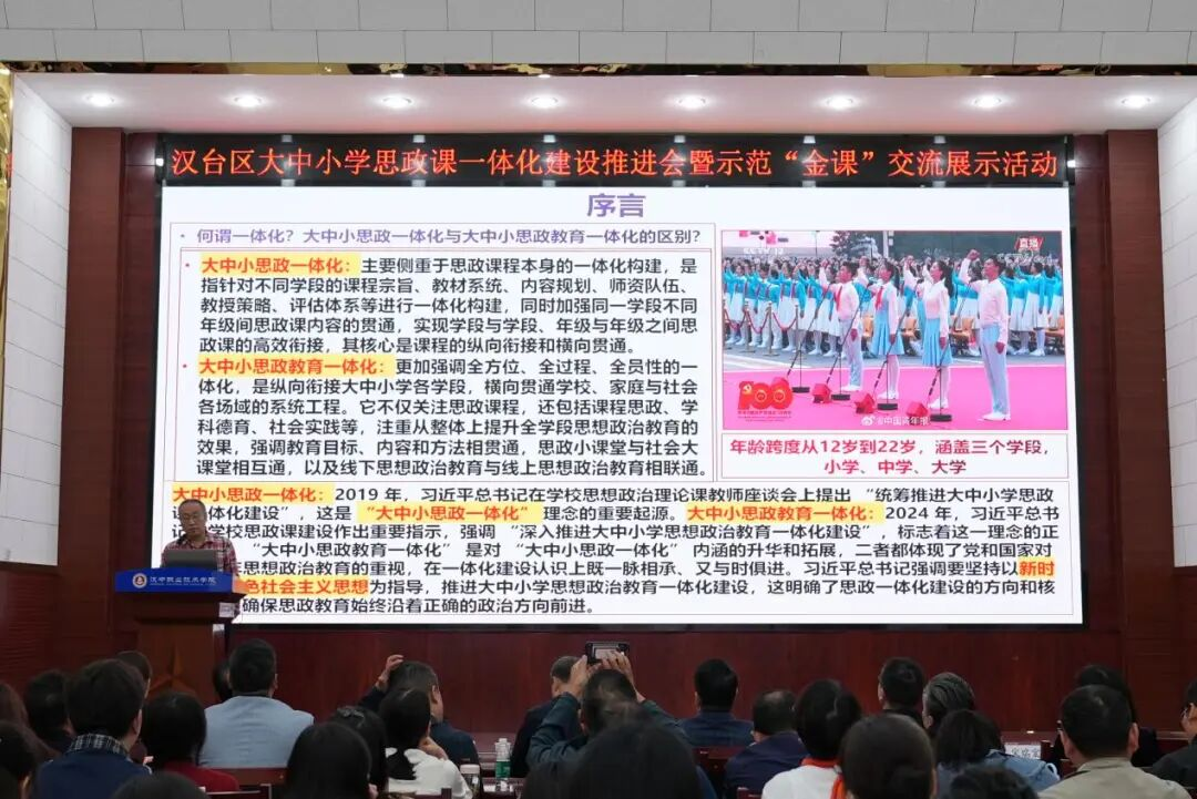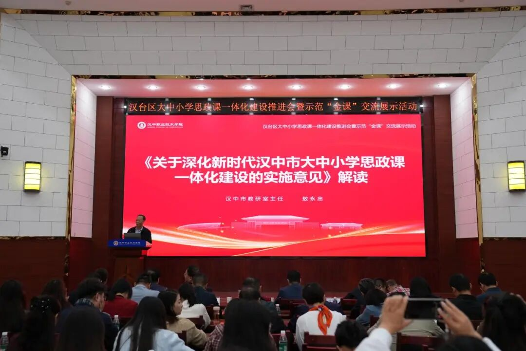 2025年9月30日,由汉中市教育局、汉中市教研室、汉台区教体局、汉台区教研室联合主办,汉中职业技术学院马克思主义学院承办,陕西理工大学马克思主义学院、汉中市汉台中学、汉中市第四中学、汉台区思源实验学校、汉台区恒大小学等多所学校协办的汉台区大中小学思政课一体化建设推进会暨示范“金课”交流展示活动在汉中职业技术学院举行。