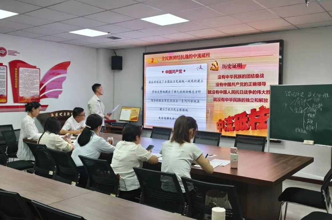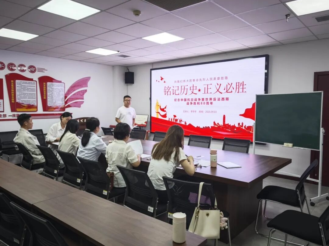 开展主题党日活动。9月3日下午,马克思主义学院思想道德与法治党支部和概论党支部联合师范学院学工党支部在学院学生社区活动室开展“铭记抗战历史,传承红色基因”主题党日活动,师范学院学生入党积极分子参加了此次活动。活动中,大家共同回看了“九三”阅兵中的精彩瞬间,集中学习了《习近平论抗日战争》《中国抗日战争史》《论持久战》等文献内容。马克思主义学院王炳坤老师面向学生开展了抗战精神宣讲活动。师范学院闫佳伟老师带领全体师生共同学唱《歌唱祖国》经典红歌,通过激昂的旋律传承红色基因,激发干事创业热情。此次主题党日活动既是一次纪念中国人民抗日战争暨世界反法西斯战争胜利的主题活动,也是对学生社区“党建+”育人模式的积极探索,实现了社区党建和教育教学、人才培养的深度融合。