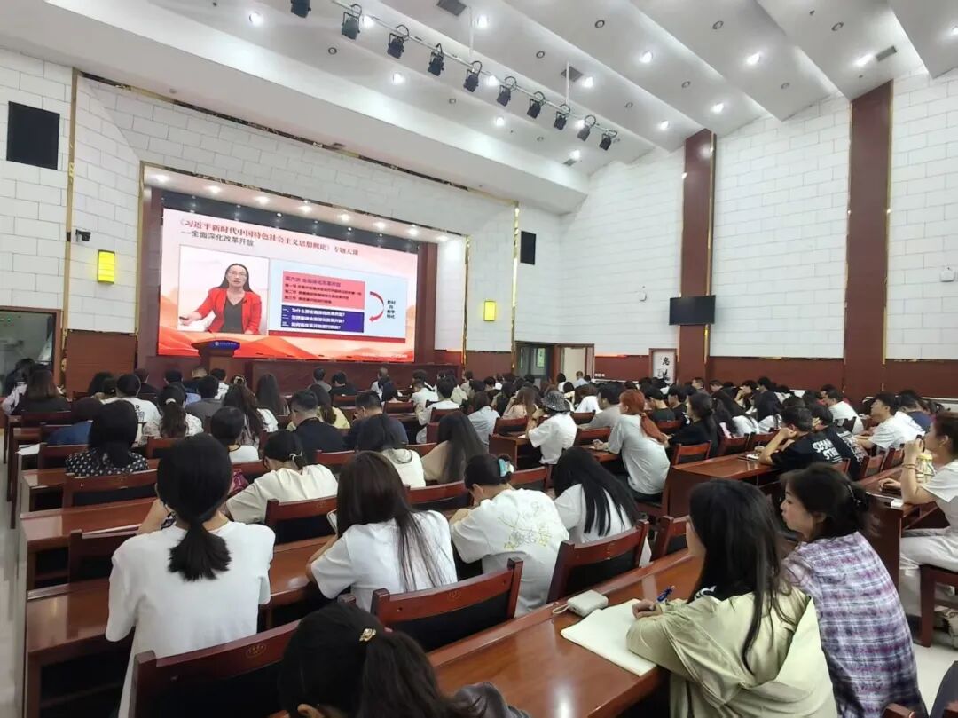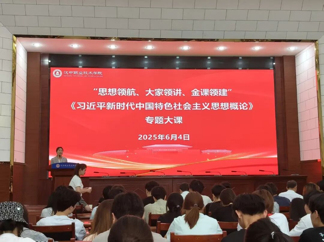 6月4日,汉中职业技术学院“思想领航、大家领讲、金课领建”一《习近平新时代中国特色社会主义思想概论》专题大课在图书馆二楼报告厅举行。