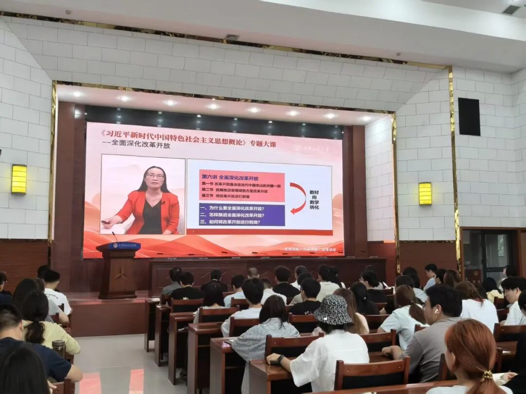 本次专题大课依托西安交通大学“思源直播平台”,邀请教育部“长江学者”特聘教授,上海交通大学马克思主义学院特聘教授、博士生导师,第八届国务院学位委员会学科评议组成员杜玉华教授主讲,聚焦《习近平新时代中国特色社会主义思想概论》课程中的第五章内容,围绕“新时代全面深化改革开放”这一主题,从本体论、认识论、价值论、方法论四个方面进行了深刻阐述。马克思主义学院将以此次活动为契机,引导思政课教师不断创新教学理念和方法,提升“习近平新时代中国特色社会主义思想概论”的课堂教学实效,加强学科建设,扎实推进习近平新时代中国特色社会主义思想进教材进课堂进头脑,不断提高铸魂育人工作质量和水平。