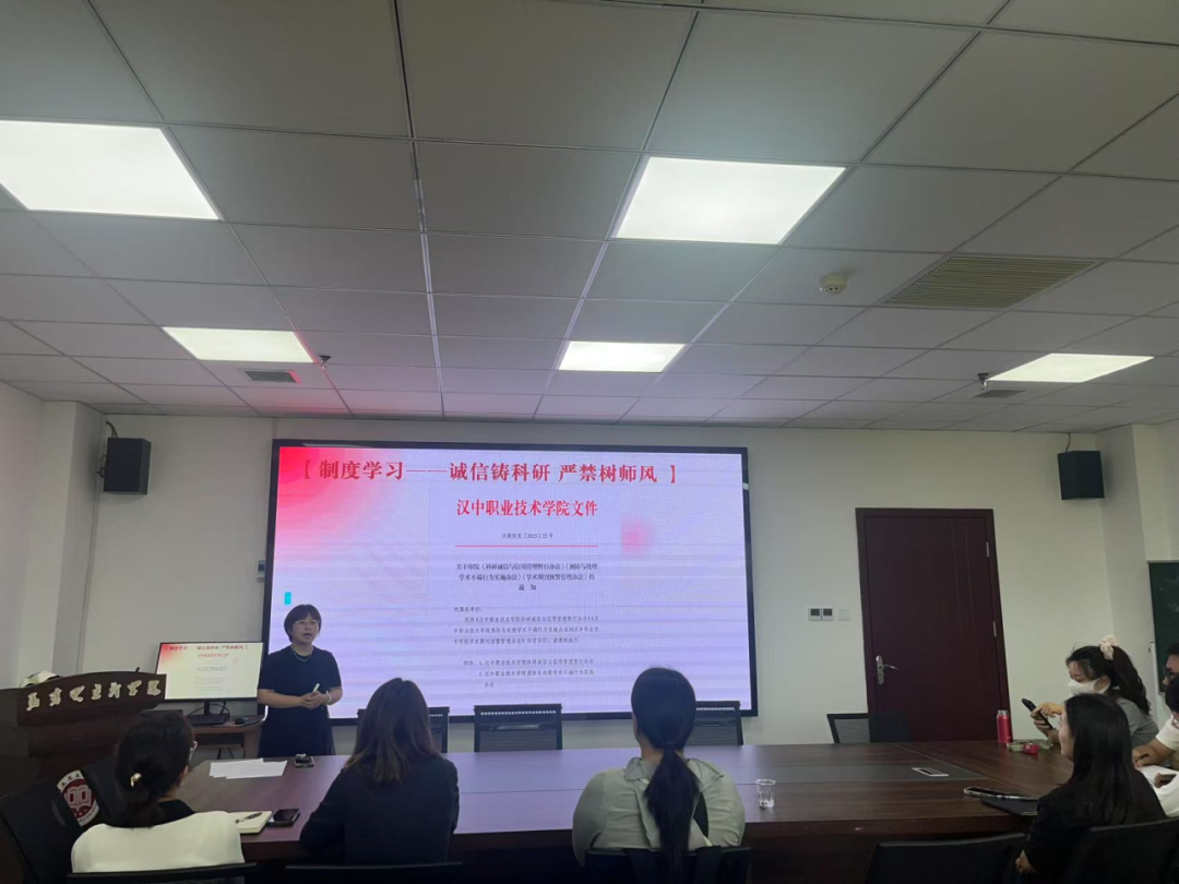 针对思政教师如何践行科研诚信责任,党课提出明确要求,要始终秉持严谨治学态度,杜绝任何形式的学术不端行为,从数据收集、论文撰写到成果发表,每个环节都要做到真实、客观、规范;同时要抵制科研功利主义,反对科研中的浮躁与铺张,重视质量而非数量,坚守学术初心,不为职称荣誉违背原则。此外,还结合汉中职业技术学院印发的《科研诚信与信用管理暂行办法》等制度文件,强调了制度对科研诚信的保障作用。