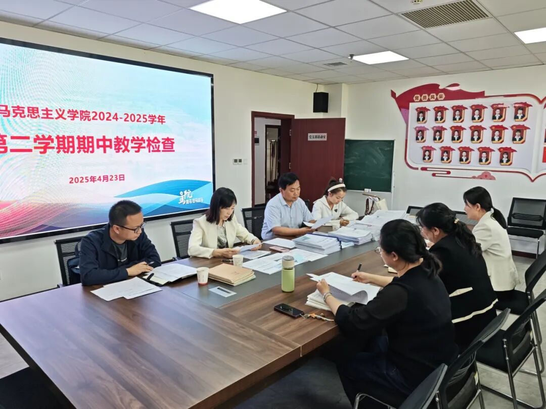 根据《关于开展2024—2025学年第二学期期中教学检查的通知》(汉职院教务发2025〔14〕号)文件要求,马克思主义学院于2025年4月14日--4月18日(第九周)进行了期中教学检查自查,对思想道德与法治、习近平新时代中国特色社会主义思想概论、毛泽东思想和中国特色社会主义理论体系概论、形势与政策4个教研室7门课程、45名专兼职教师的教学工作情况进行了全面集中检查。自查中发现马克思主义学院教学任务、授课计划、教学进度、教案编写等常规教学工作落实到位,实践教学、社会服务等特色工作亮点突出。4月14日,马克思主义学院以深入课堂,推门听课的方式,开展了期中教学检查听课活动,随机听取了高媛、赵书阳两位老师的思政课堂,仔细检查了教师们的教学准备、教学环节、教学组织以及学生的听课情况。整体上,教师们准备充分,教态端正,能够理论联系实际进行教学,教学秩序良好。随后,马克思主义学院教学督导小组召开了听课反馈会,分别从教学内容、课程体系、问题设计、教学方法等方面讨论交流了听课意见和建议。
