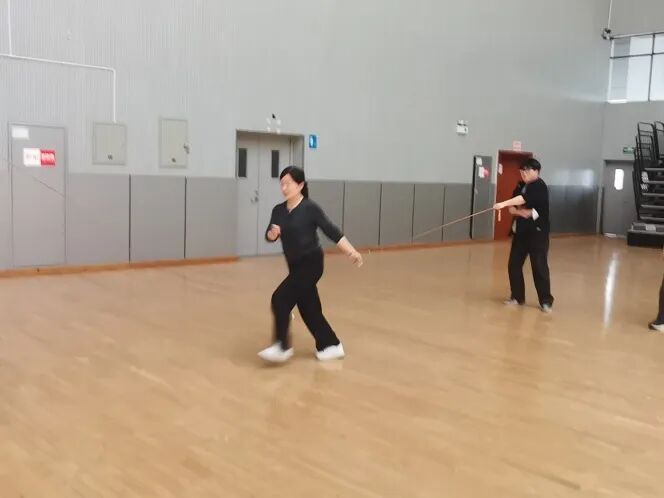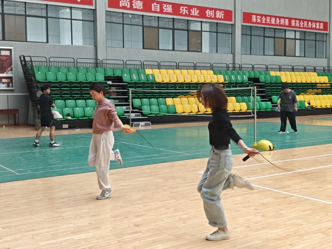 竞技与趣味相映成趣,团队风采尽显无遗。在妙趣横生的“乒乓接力”环节,教师们手持球拍,既要保持平衡又要快速行进,调皮的乒乓球不时“溜号”,引得全场笑声不断;“绳采飞扬”跳长绳比赛中,翻飞的长绳划出优美弧线,队员们默契配合、步调统一,此起彼伏的口号声与雷鸣般的掌声将现场气氛推向高潮。个人挑战项目同样精彩纷呈:“毽舞青春”踢毽子比赛中,五彩的毽子在空中划出绚丽轨迹;“绳舞飞扬”跳绳环节,翻飞的绳索奏响欢快乐章。平日里严谨治学的老师们此刻化身运动健将,整个赛场洋溢着欢乐与激情。
