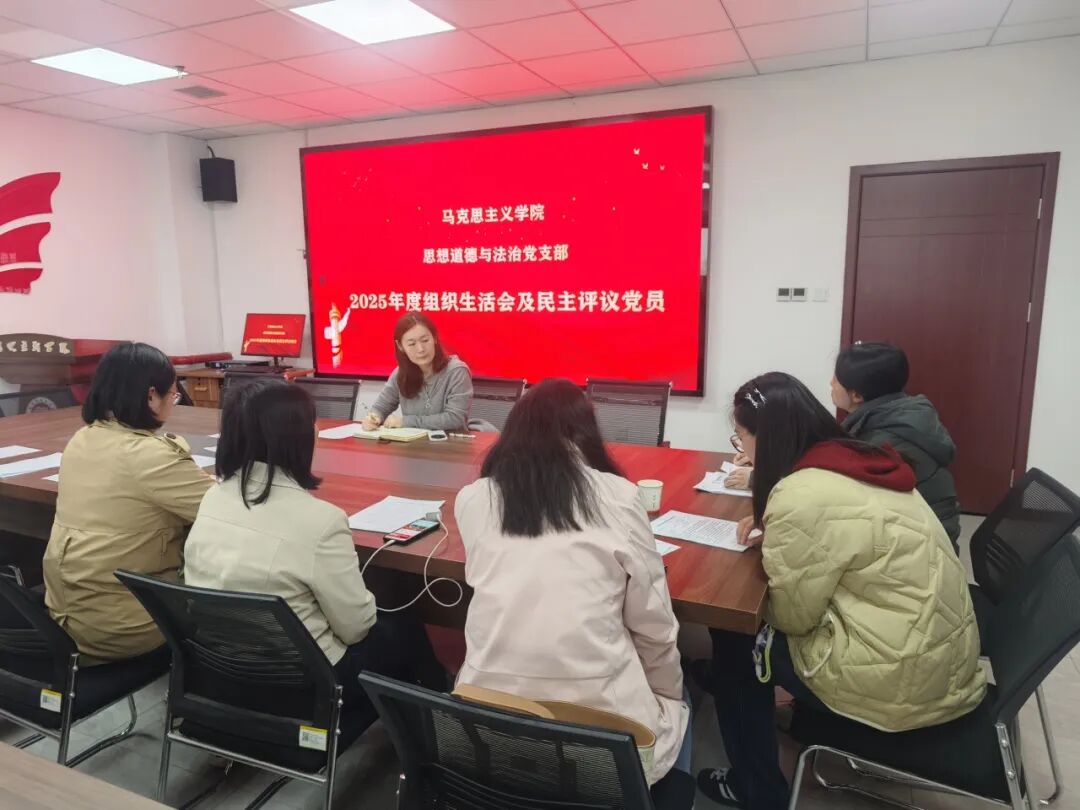 2025年3月12日,马克思主义学院思想道德与法治党支部在行政楼X-513会议室召开2024年度组织生活会及民主评议党员会议,会议由党支部书记李琨主持,全体党员教师参会。