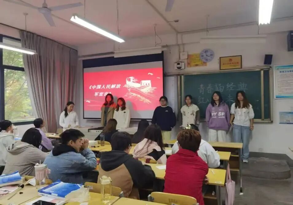 2025年9月至10月,马克思主义学院概论教研室组织开展“青春诵经典 红心向未来”毛泽东著作诵读分享活动,本学期学习《毛泽东思想和中国特色社会主义理论体系概论》课程的全体学生积极参与。活动中,同学们以个人或小组为单位,精选《星星之火,可以燎原》《井冈山的斗争》《实践论》《论持久战》《为人民服务》等经典篇目参与展示。通过以诵传情、以读促思,学生进一步深化了对毛泽东思想理论精髓的理解与认同,激发了传承红色文化、担当时代使命的青春热情。作为马克思主义学院特色实践教学活动之一,本次诵读分享有效拓展了思政育人载体,为学生筑牢信仰根基、书写奋斗青春注入了扎实而持久的精神动力。