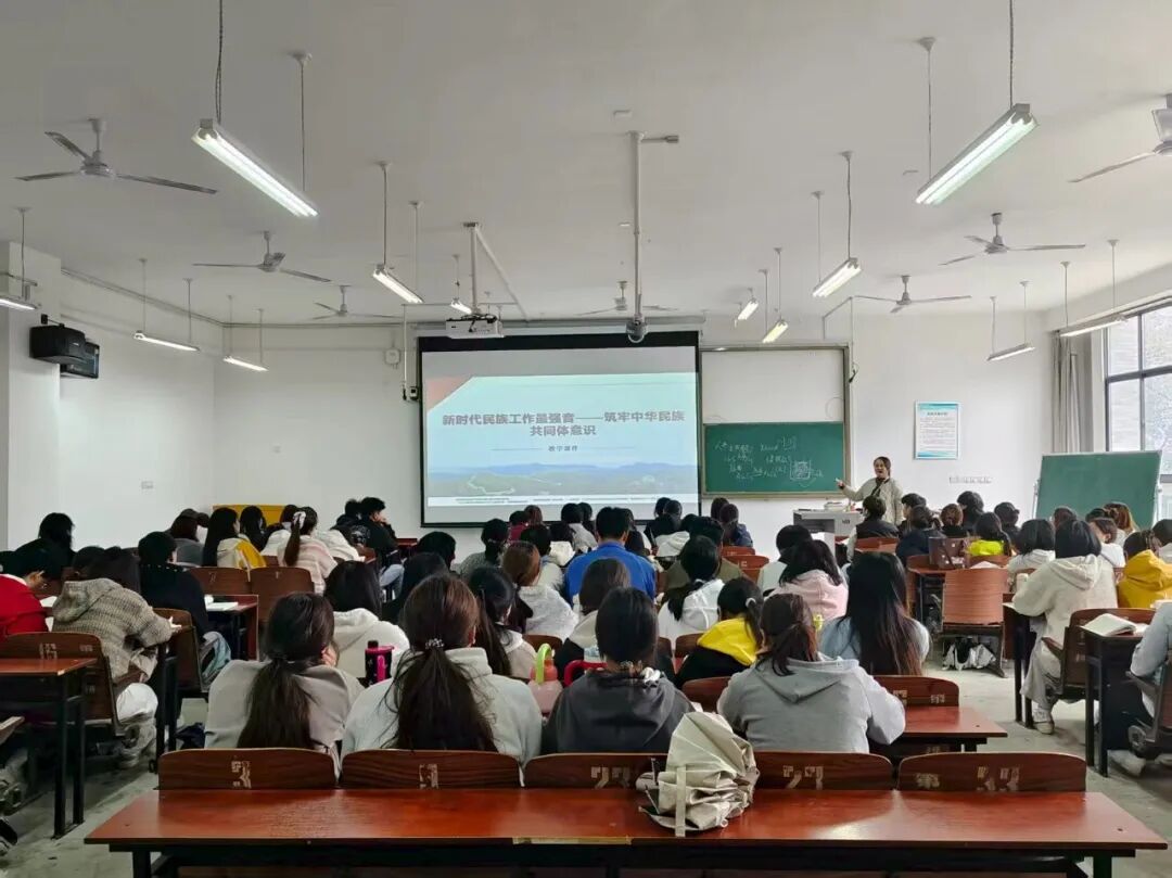 为深入学习贯彻习近平总书记关于加强和改进民族工作的重要思想,全面落实中央民族工作会议精神,10月份以来,马克思主义学院组织开展了铸牢中华民族共同体意识宣传教育活动。活动充分发挥课堂教学主渠道、主阵地作用,将铸牢中华民族共同体意识教育内容精准融入思政课教学设计与实际授课环节,在“习近平新时代中国特色社会主义思想概论”课程教学中专门开设“新时代民族工作的最强音——铸牢中华民族共同体意识”专题,围绕中华民族共同体意识的丰富内涵、核心要义与重大现实意义展开深入讲解,引导学生从历史脉络、现实需求和未来发展等多维度理解其重要性,让民族团结的种子在学生心中扎根生长,激发学生维护民族团结的自觉意识。马克思主义学院将以此次活动的开展为契机,持续推动铸牢中华民族共同体意识教育往深里走、往实里走、往心里走。