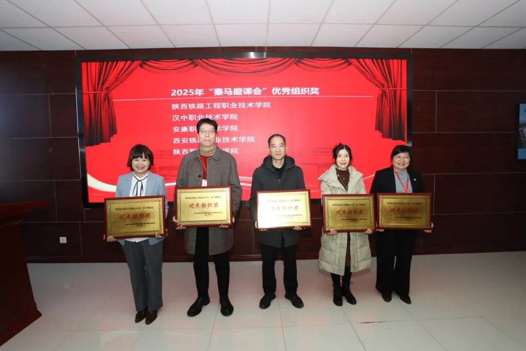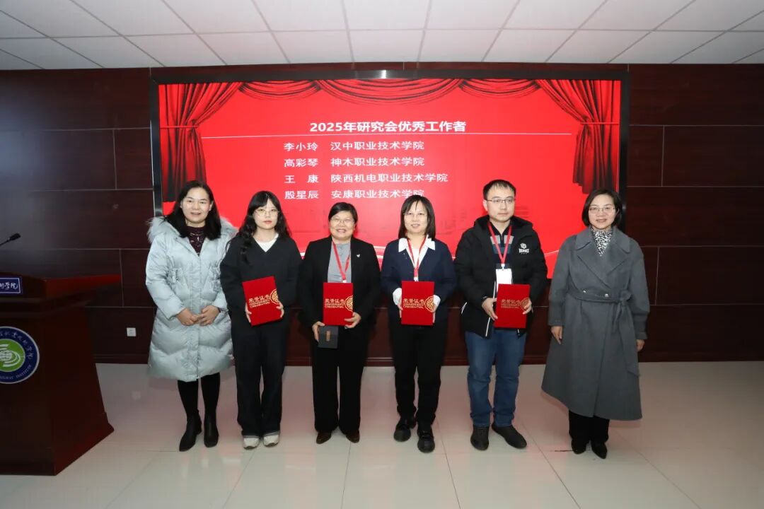 会上,中共陕西省委教育工委领导对全省2026年高职高专思政课建设工作提出要求:一是深化赛教融合,实现“以赛促教、以赛促改”。二是锚定金课目标,夯实课程建设根基。三是推动数字赋能,创新实践育人模式。并希望研究会、联盟和各成员院校以此次年会为新起点,聚焦省委教育工委的决策部署,锐意进取,扎实工作,共同推动我省高职高专思政课建设不断迈上新台阶。陕西省高职高专院校思想政治理论课建设联盟会长、陕西铁路工程职业技术学院党委书记焦胜军作2025年度工作报告,报告中充分肯定了汉中职业技术学院作为陕西省高职高专院校思想政治理论课教学研究会和陕西省高职高专院校思想政治理论课建设联盟副会长单位所做工作。同时为2025年获得荣誉的单位及个人颁奖:汉中职院荣获“秦马磨课会”优秀组织奖和“中科杯”知识竞赛活动优秀组织奖,汉中职院党委书记李志刚、汉中职院马克思主义学院教授李小玲荣获研究会优秀工作者称号。汉中职院党委副书记袁力受邀在颁奖环节为获奖者颁奖。