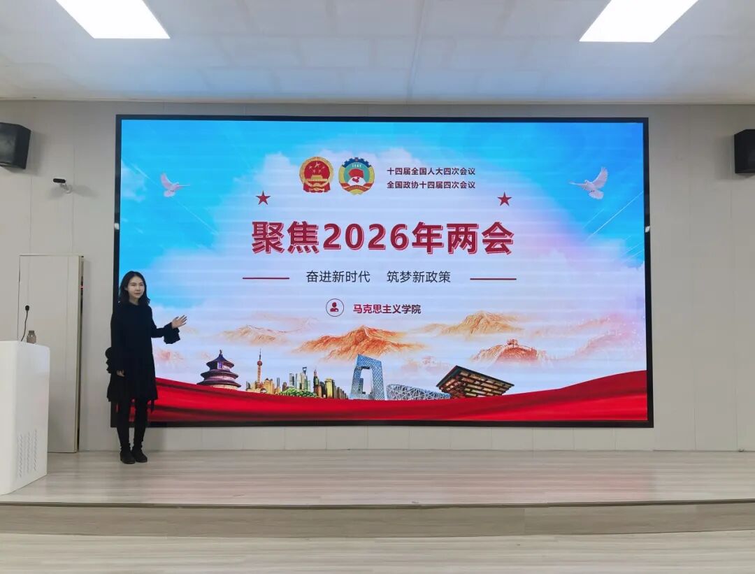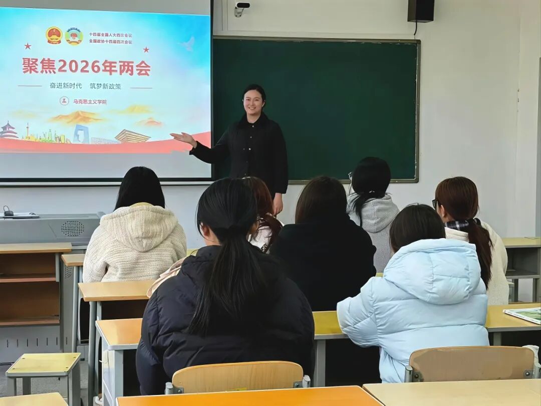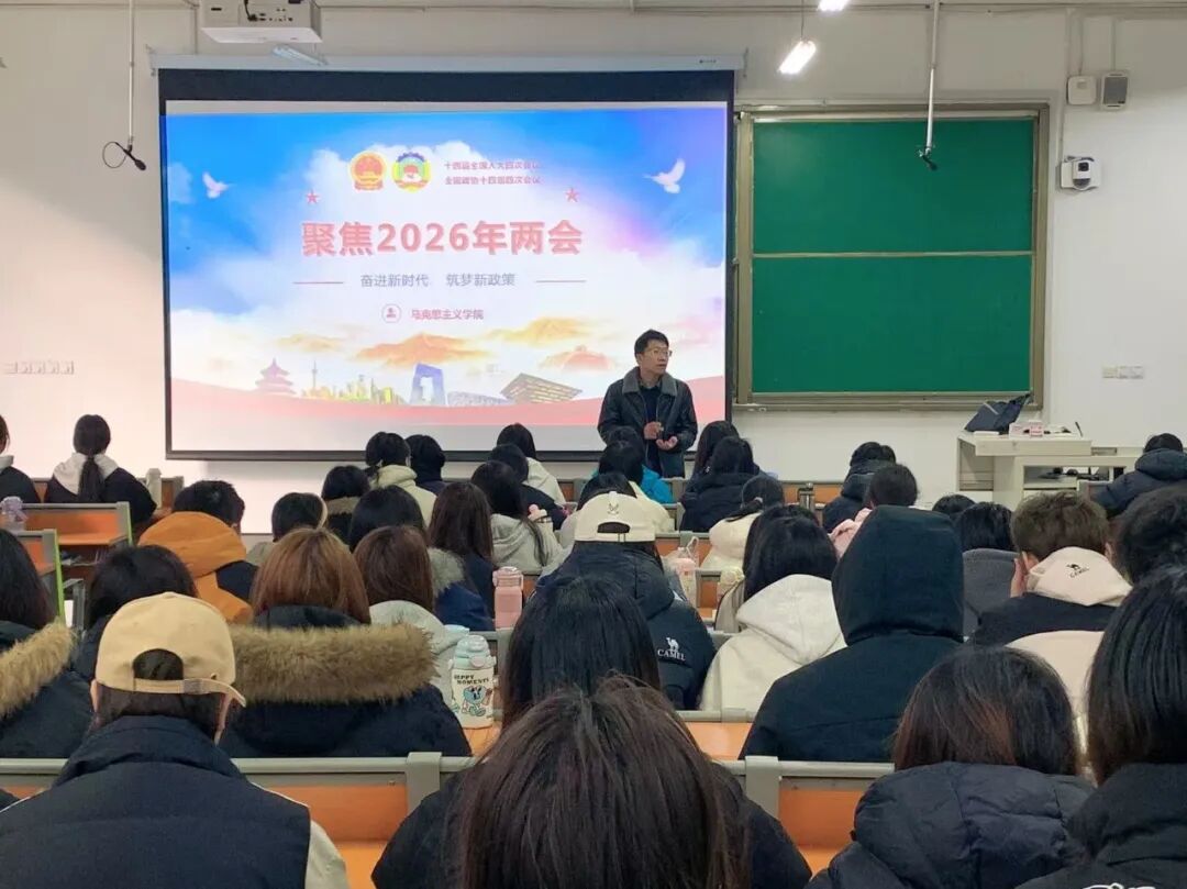 为深入学习贯彻2026年全国两会精神,切实把全院师生的思想和行动统一到党中央决策部署上来。近日,马克思主义学院形势与政策教研室精心谋划、统筹推进,组织开展2026年全国两会精神专题宣讲活动,实现全院9个二级学院、200多个班级、9000余名学生全覆盖,让两会精神走进课堂、浸润人心,为青年学子成长成才注入精神动力。