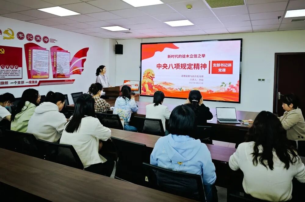 为进一步加强党员干部的作风建设,提升党性修养,2025年4月23日,马克思主义学院思想道德与法治党支部书记李琨以“中央八项规定:新时代的徙木立信之举”为主题,为全体党员带来一场深刻且具教育意义的党课。全体党员教师参会。